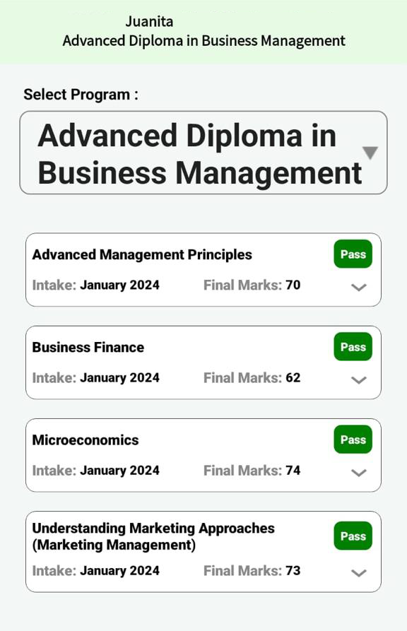 "My accounting improved from 42% to 74%, and Financial Management went well above average. The tutors truly care about your success."